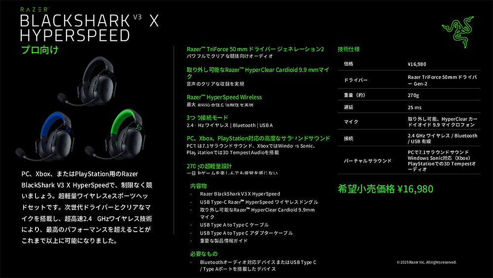 Razerのゲーミングヘッドセット「BlackShark V3」シリーズが発売、計3モデル(17/19)