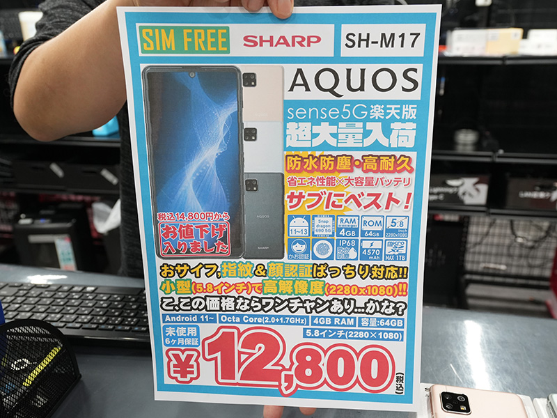 5G/おサイフケータイ対応の「AQUOS sense5G」が12,800円!未使用品が大量入荷(3/5)