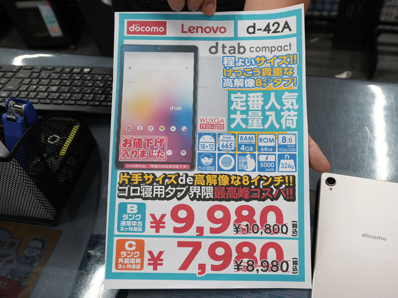 Androidタブレット「docomo dtab Compact」が7,980円から、中古品セール(2/5)