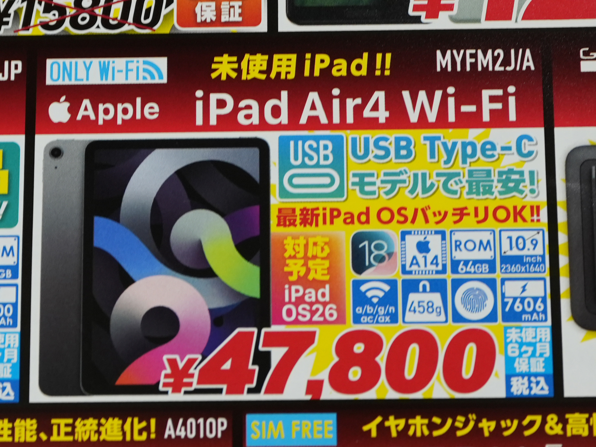 iPad Air Wi-Fi 2020年モデルが47,800円!未使用品セール