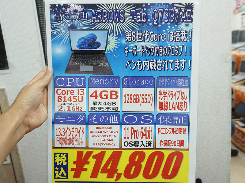 富士通の13.3インチ2in1 PCが14,800円!第8世代CoreやWindows 11 Pro搭載の中古品セール