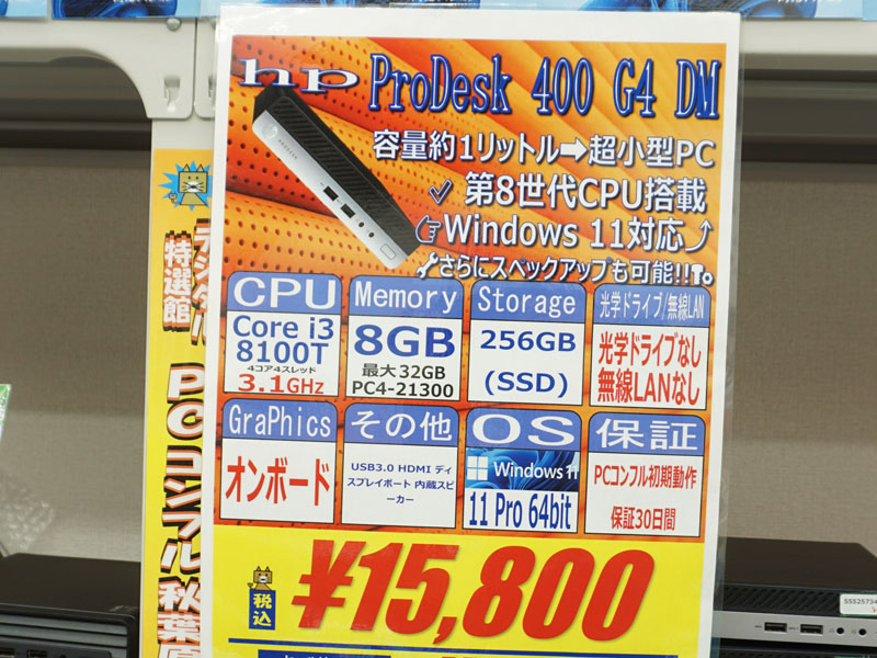 第8世代Core i3搭載の小型PC「ProDesk 400 G4 DM」が15,800円、中古PCセール