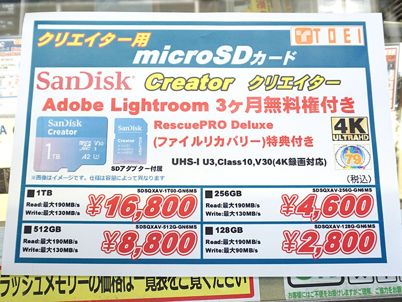 クリエイター向けmicroSDカード「SanDisk Creator microSD」が入荷(5/5)
