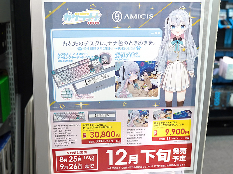 Vアーティスト「カグラナナ」コラボのゲーミングキーボード/ガラスマウスパッドが予約開始、実機展示も