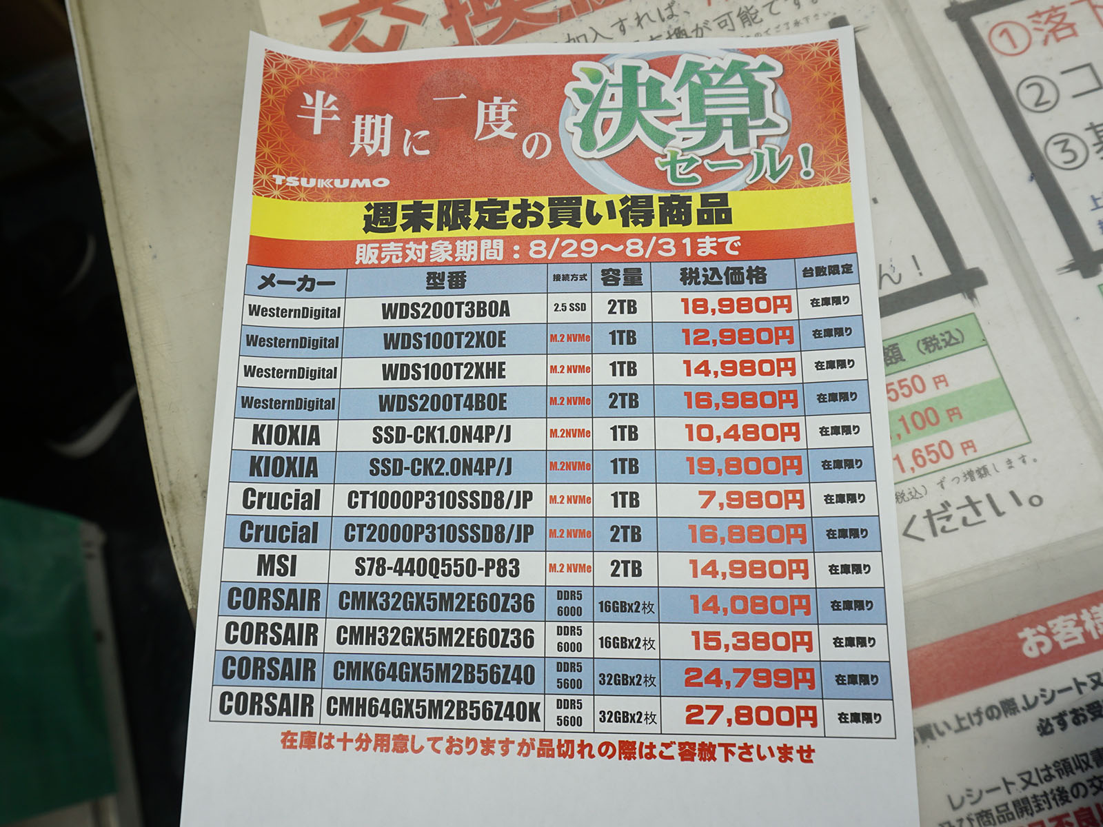アキバお買い得価格情報(8月28日~29日調査)