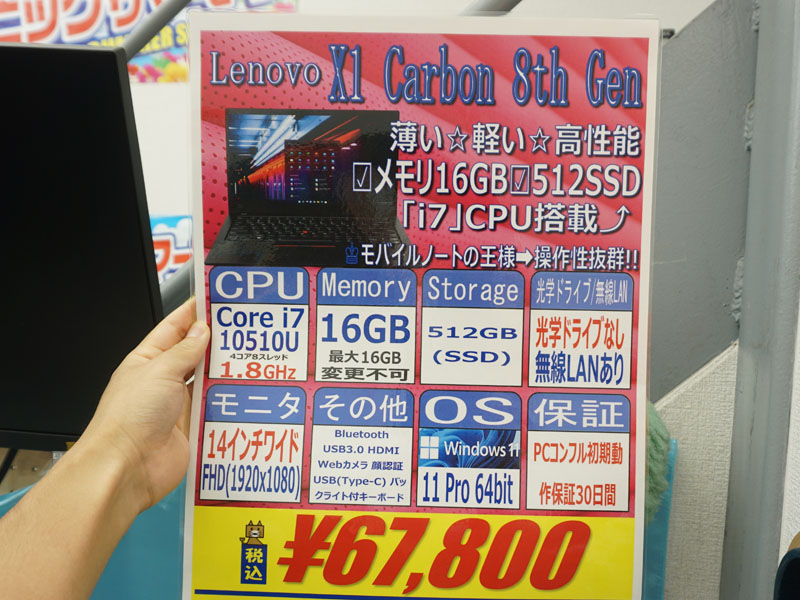 第10世代Core i7やメモリ16GB搭載の「ThinkPad X1 Carbon 8th Gen」が67,800円、中古PCセール