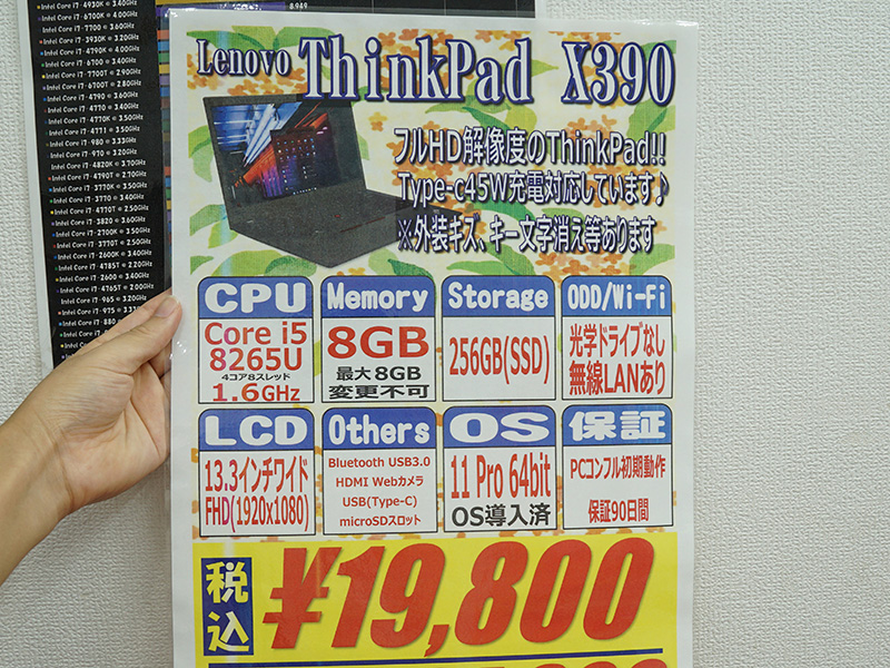 Core i5-8265U+Windows 11 Pro搭載の「ThinkPad X390」が19,800円!中古PCセール