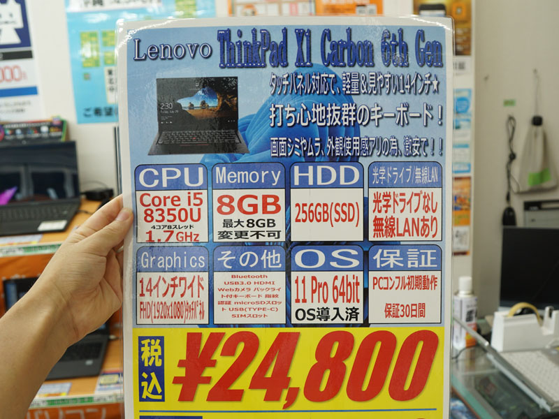 第8世代Core i5搭載の「ThinkPad X1 Carbon 6th Gen」が24,800円、中古PCセール