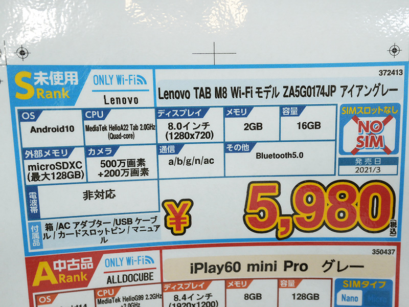 8インチAndroidタブレット「Lenovo TAB M8」が5,980円!Wi-Fiモデルの未使用品セール