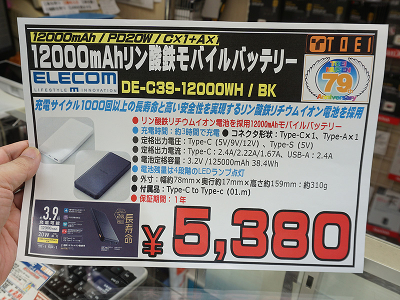 高い安全性を実現した「ナトリウムイオンモバイルバッテリー」がエレコムから登場
