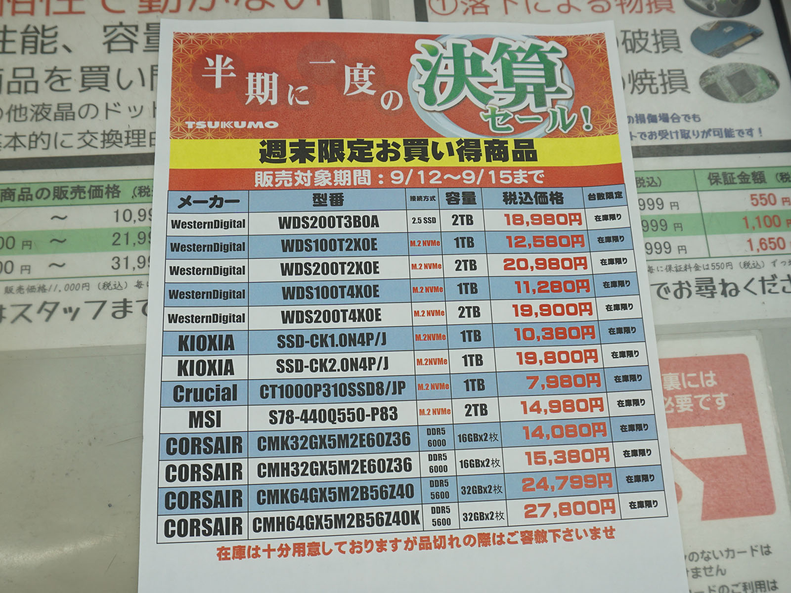アキバお買い得価格情報(9月11日~12日調査)