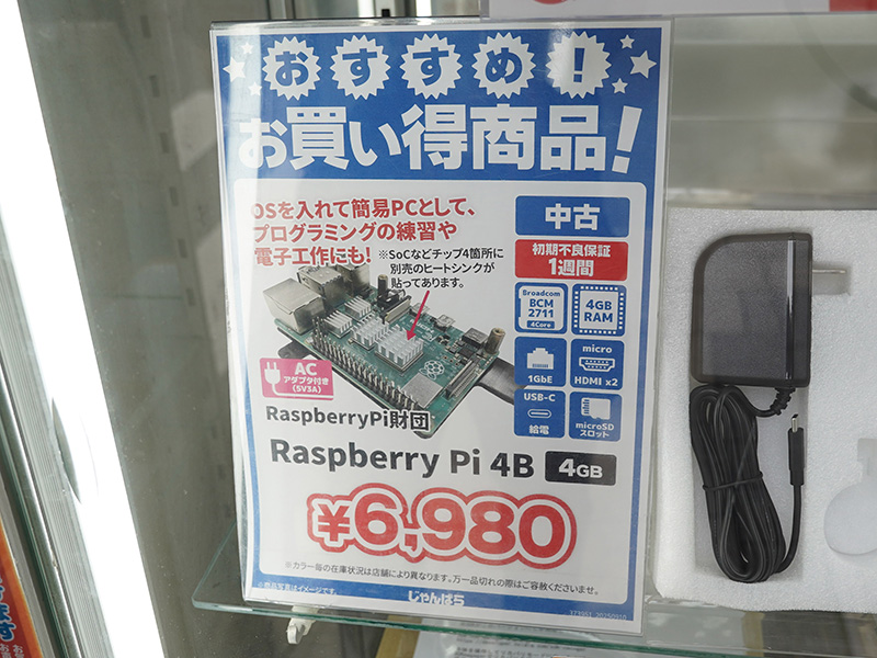 4GBメモリ版の「Raspberry Pi 4 Model B」が6,980円!中古品が大量入荷
