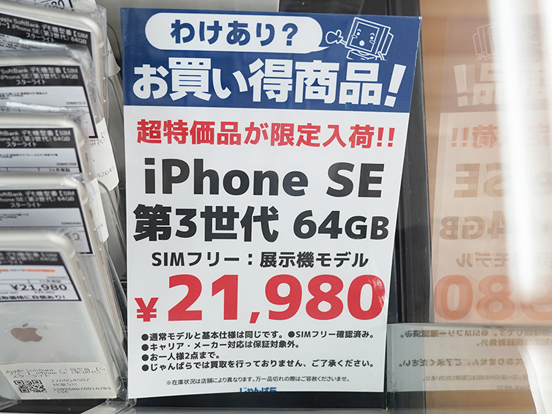 第3世代iPhone SEが21,980円!展示機モデルのお買い得セール