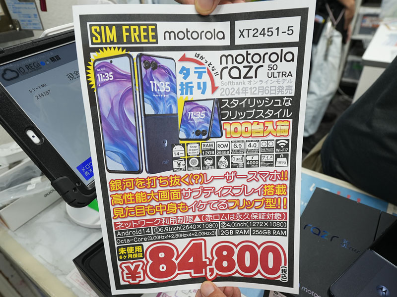 モトローラの折りたたみスマホ「razr 50 Ultra」が84,800円、未使用品セール(4/5)