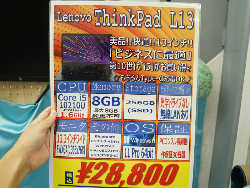 第10世代Core i5搭載の「ThinkPad L13」が28,800円、中古PCセール
