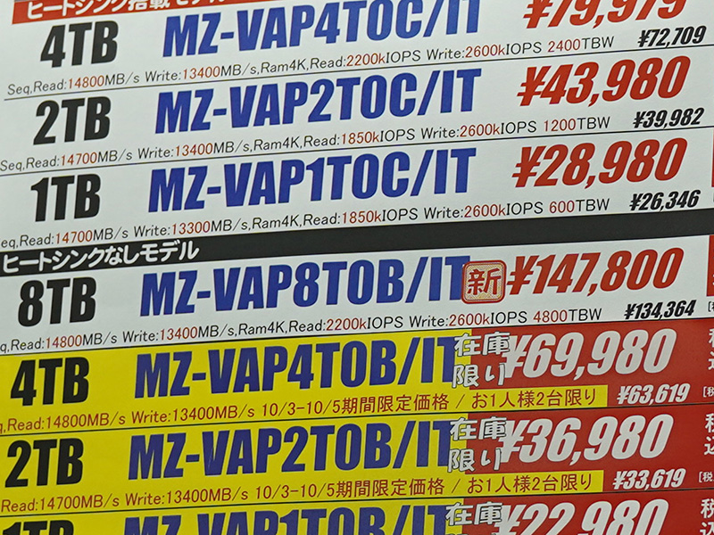 SamsungのPCIe 5.0 SSD「9100 PRO」に大容量8TBモデル、10月3日発売