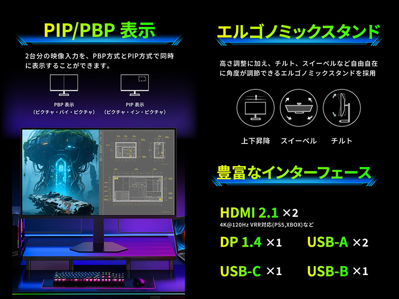 量子ドット有機ELパネル採用の32インチ曲面ゲーミングモニター「Titan Army G32T9W」