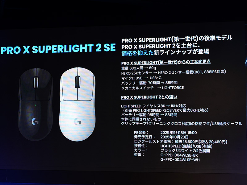 人気ゲーミングマウスの廉価モデル「PRO X SUPERLIGHT 2 SE」がロジクールから