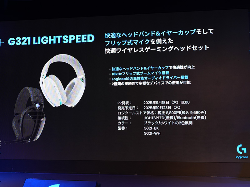 軽量設計のワイヤレスゲーミングヘッドセット「G321 LIGHTSPEED」がロジクールから