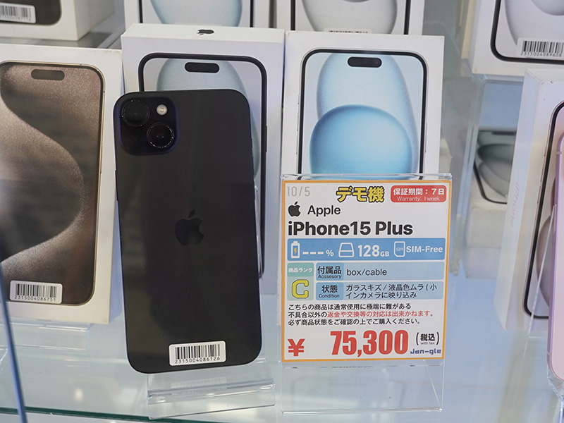 「iPhone 15 Pro Max 256GB」が108,300円、「iPhone 15 128GB」が68,300円など、訳あり中古品セール