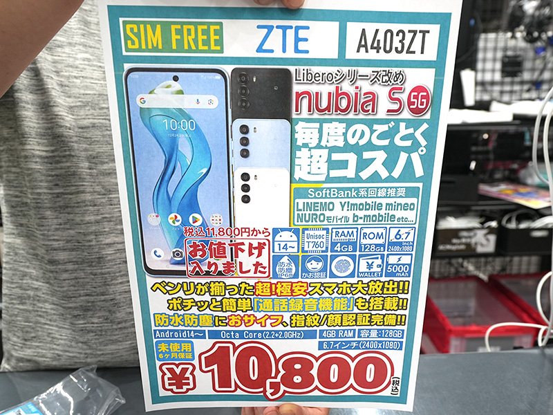 おサイフケータイ対応の5Gスマホが10,800円!未使用品セール