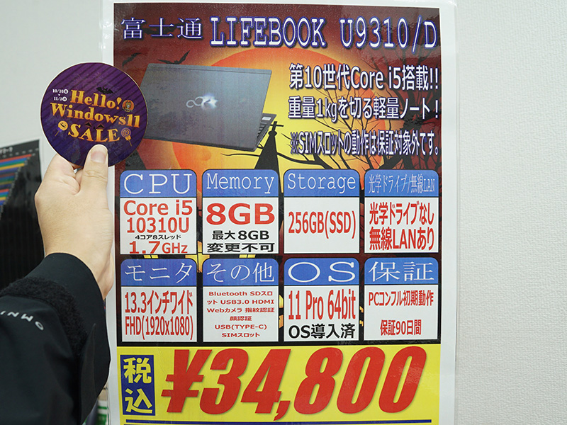 Core i5-10310U+8GBメモリ搭載の13.3型「LIFEBOOK U9310/D」が34,800円!中古PCセール