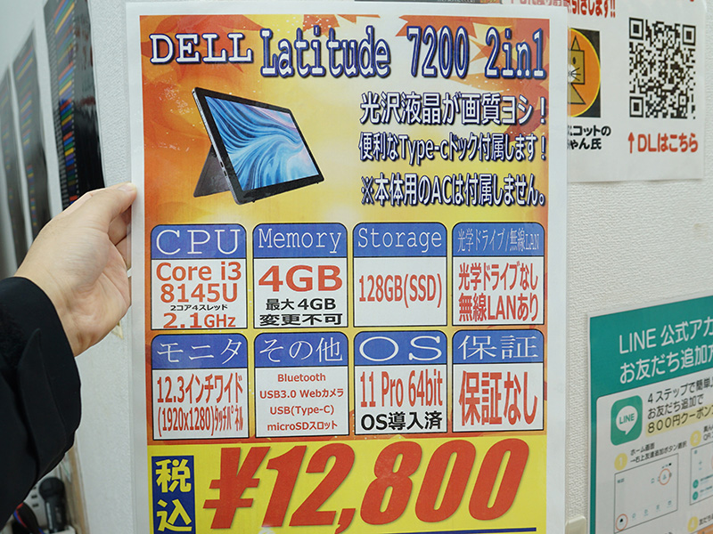 Core i3-8145UやWindows 11 Pro搭載の「Latitude 7200 2in1」が12,800円!保証無しの中古品セール
