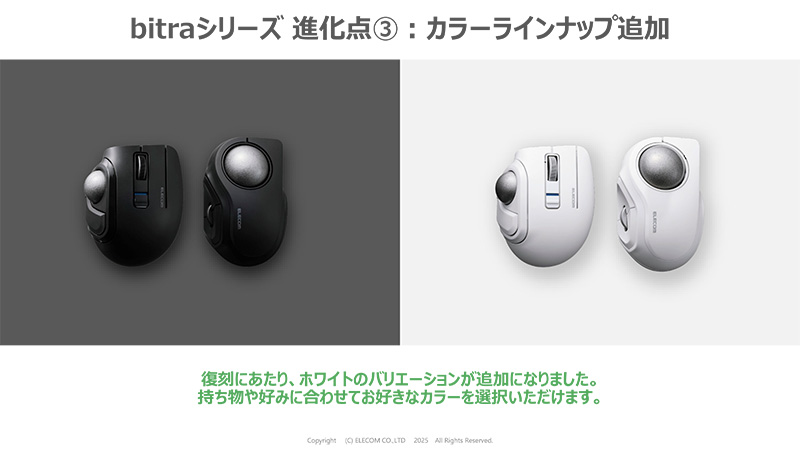 持ち運べるエレコム製小型トラックボール「bitra」が復刻、2.4G/BT両対応&新色ホワイト追加