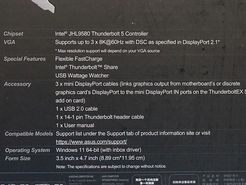 ASUSのThunderbolt 5増設カードが発売