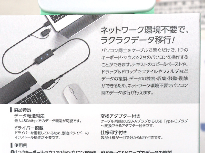 ネットワーク環境不要でデータ移行ができるUSBリンクケーブルがエレコムから、Type-C接続にも対応