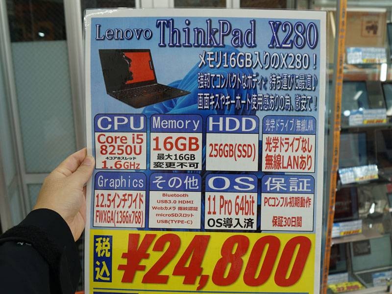 メモリ16GB搭載の「ThinkPad X280」が24,800円、中古PCセール
