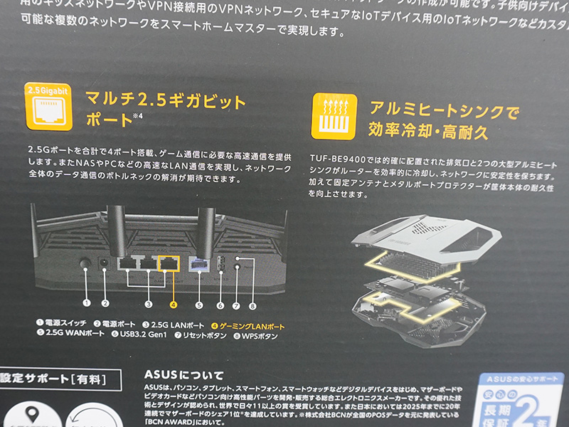 ASUSのWi-Fi7対応ゲーミングルーター「TUF Gaming BE9400」が発売、2.5Gポート×4搭載(3/5)