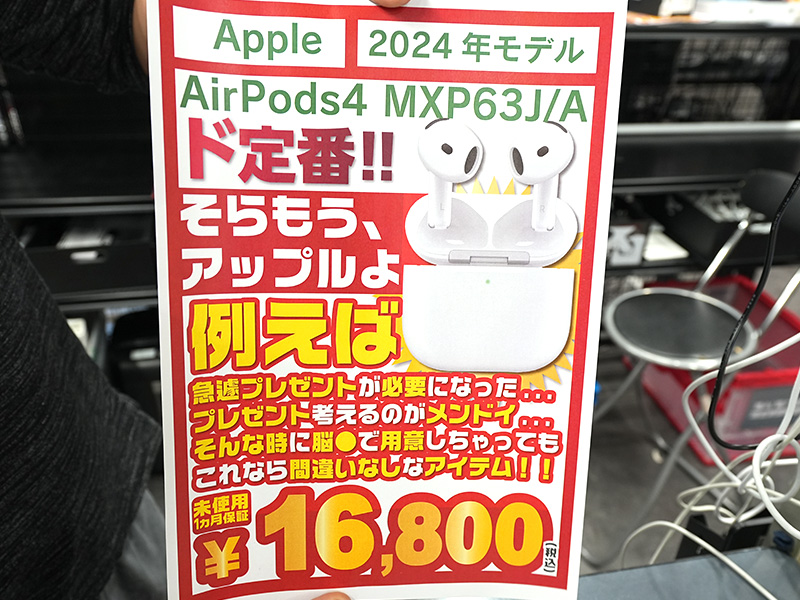 Appleの完全ワイヤレスイヤホン「AirPods 4」が16,800円!未使用品が期間限定セール
