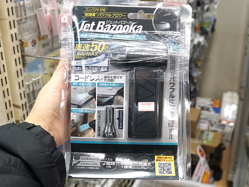 最大風速60m/s超の電動エアダスター「ジェットバズーカ」が入荷、LEDライト搭載
