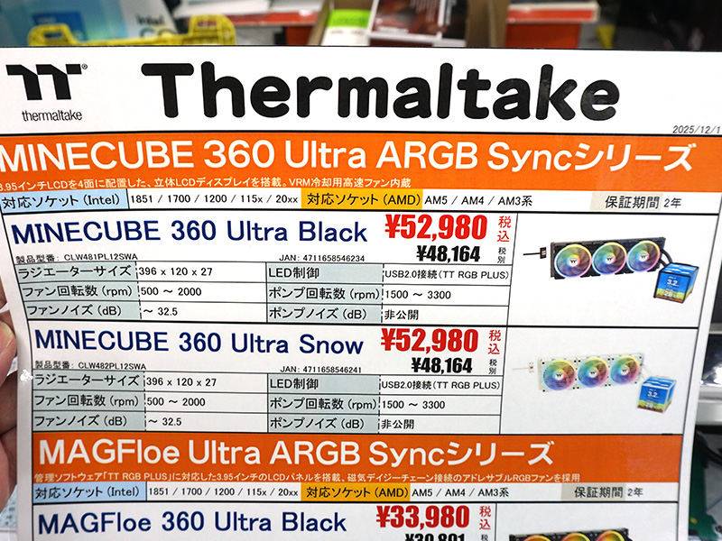4面液晶の“立方体画面付きポンプヘッダー”を備えた水冷CPUクーラー「MINECUBE 360 Ultra ARGB Sync」がThermaltakeから