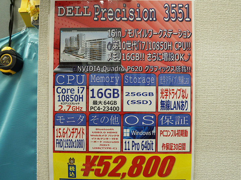 Core i7-10850H+Quadro+16GBメモリ搭載のDell製15.6型ノートPCが52,800円!中古品セール