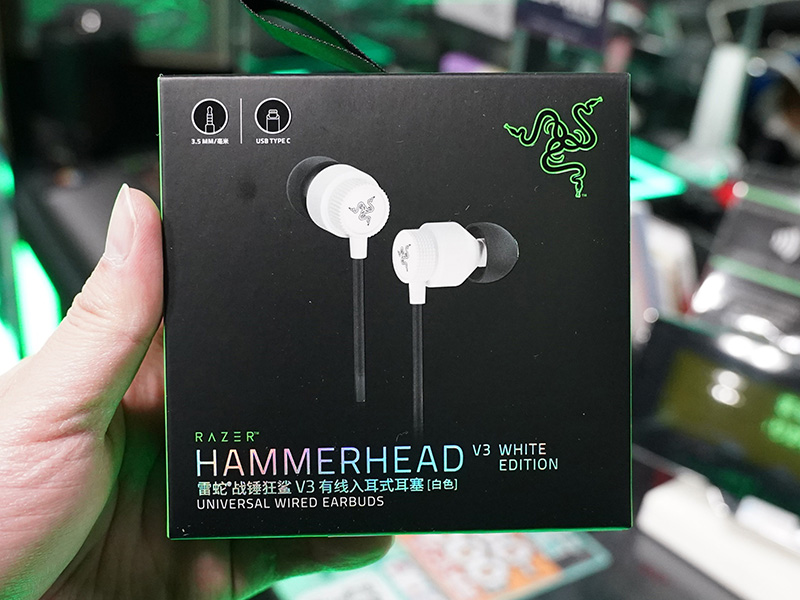 Razerの有線イヤホン「Hammerhead V3」にホワイトモデル、3.5mm/USB Type-C接続に対応