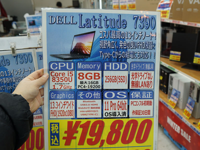 Core i5-8350U搭載の13.3型ノート「Latitude 7390」が19,800円、中古PCセール