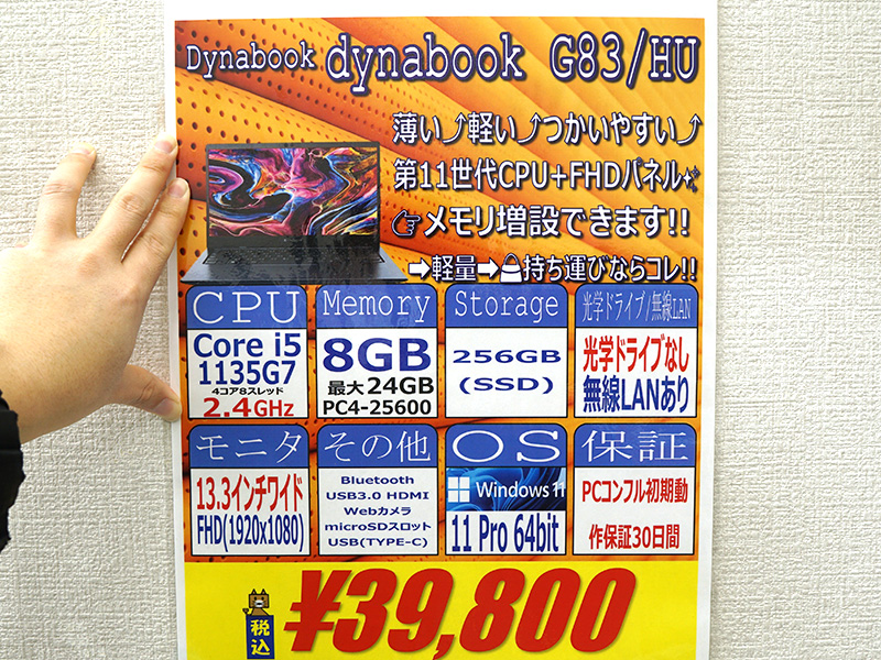 第11世代Core搭載の軽量13.3インチノート「dynabook S73/HS」が39,800円!中古PCセール