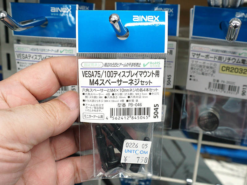 湾曲モニターにも対応したモニターアーム用ネジセットがアイネックスから