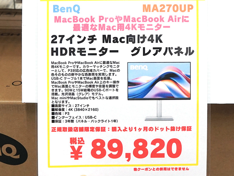 光沢パネル採用のMac向け27インチ4Kモニター「BenQ MA270UP」が秋葉館で展示中