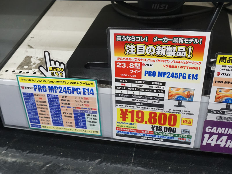 ミニPCを背面に搭載できる23.8型モニター「PRO MP245PG E14」がMSIから