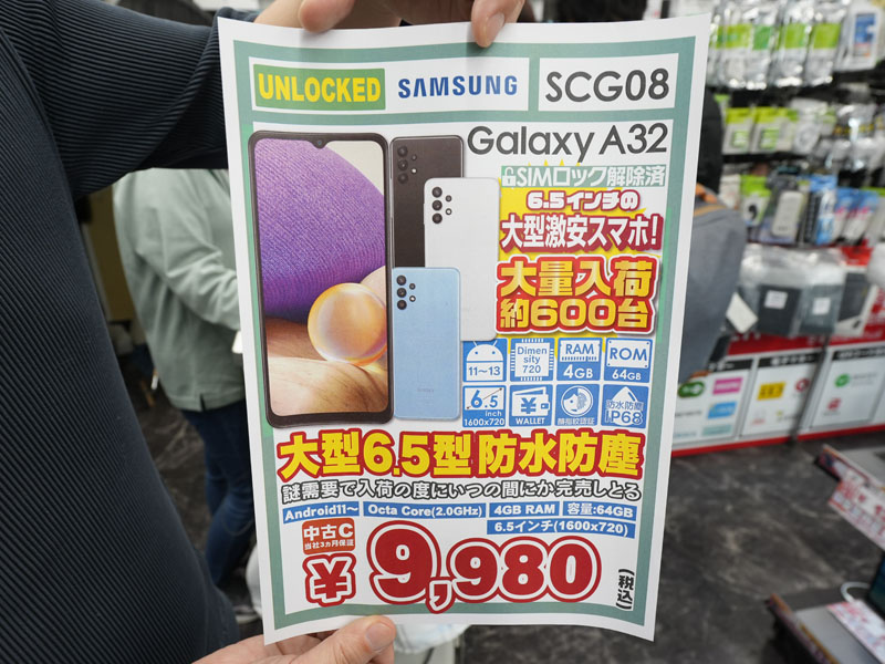 6.5型スマホ「Galaxy A32」が9,980円、中古品が大量入荷