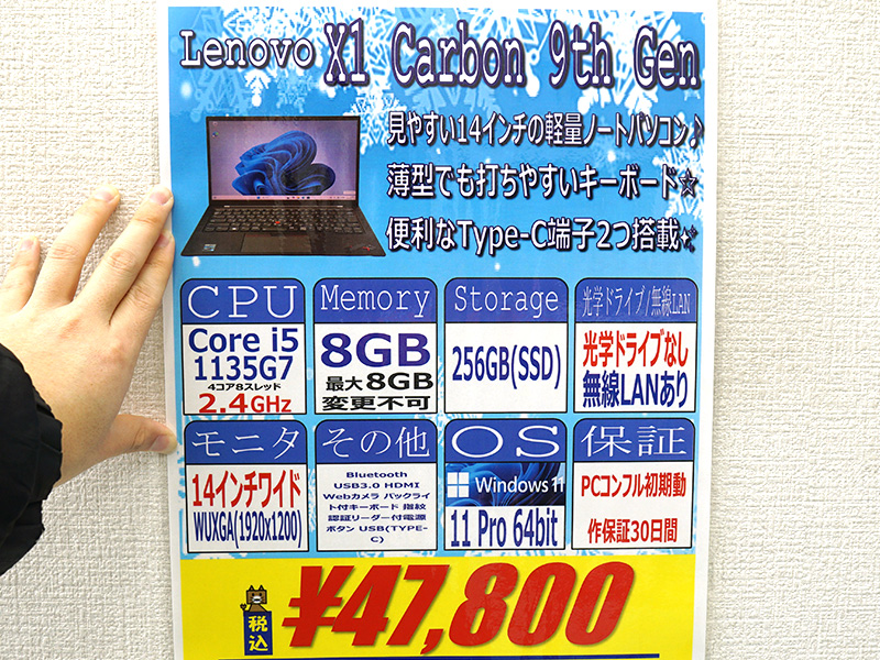 第11世代Core搭載の「ThinkPad X1 Carbon」が47,800円!中古PCセール