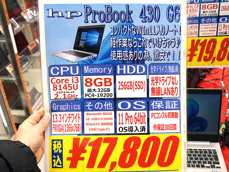第8世代Core搭載の13.3インチノート「ProBook 430 G6」が17,800円!中古PCセール