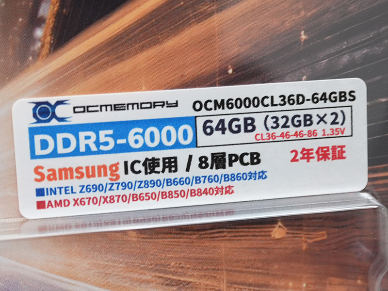 Samsungチップ採用のOVERCLOCK WORKSオリジナルDDR5-6000メモリ