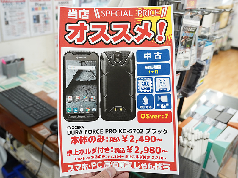 京セラの高耐久スマホ「DURA FORCE PRO」が2,490円から!中古品セール