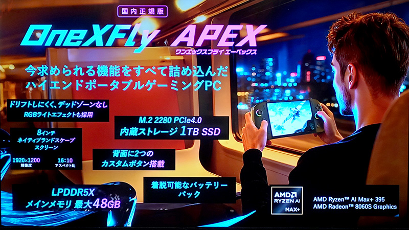 Ryzen AI Max+ 395やメモリ48GB搭載のモバイルゲーミングPC「OneXFly APEX」が近日発売、水冷ボックスにも対応(4/23)