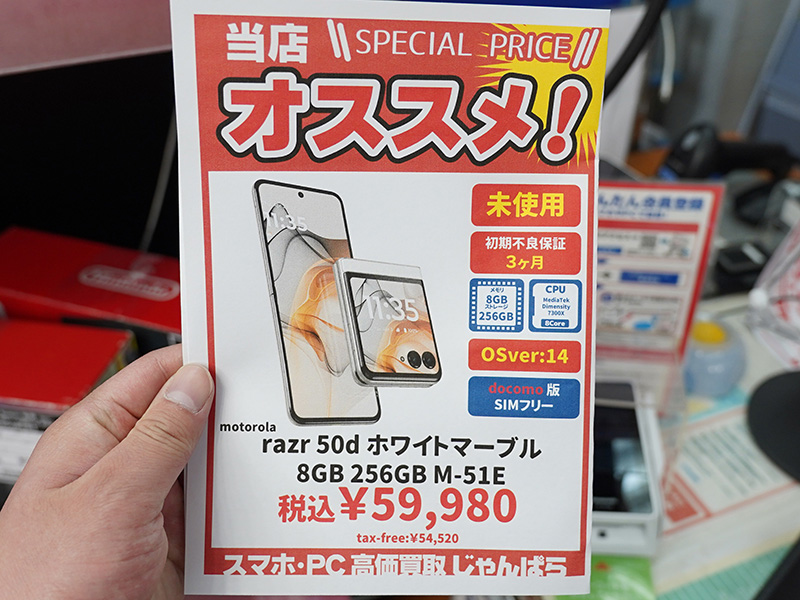折りたたみスマホ「motorola razr 50d」が59,980円!未使用品セール