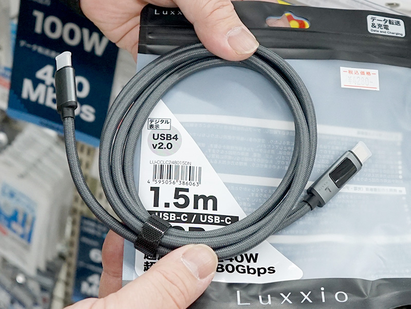 Luxxioのワット表示画面付きUSB4ケーブル、1mと1.5mの2サイズ